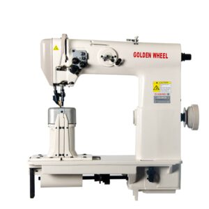 Máquina de poste dos agujas puntada recta, doble arrastre, gancho pequeño, soporte de costura cilíndrico vertical,